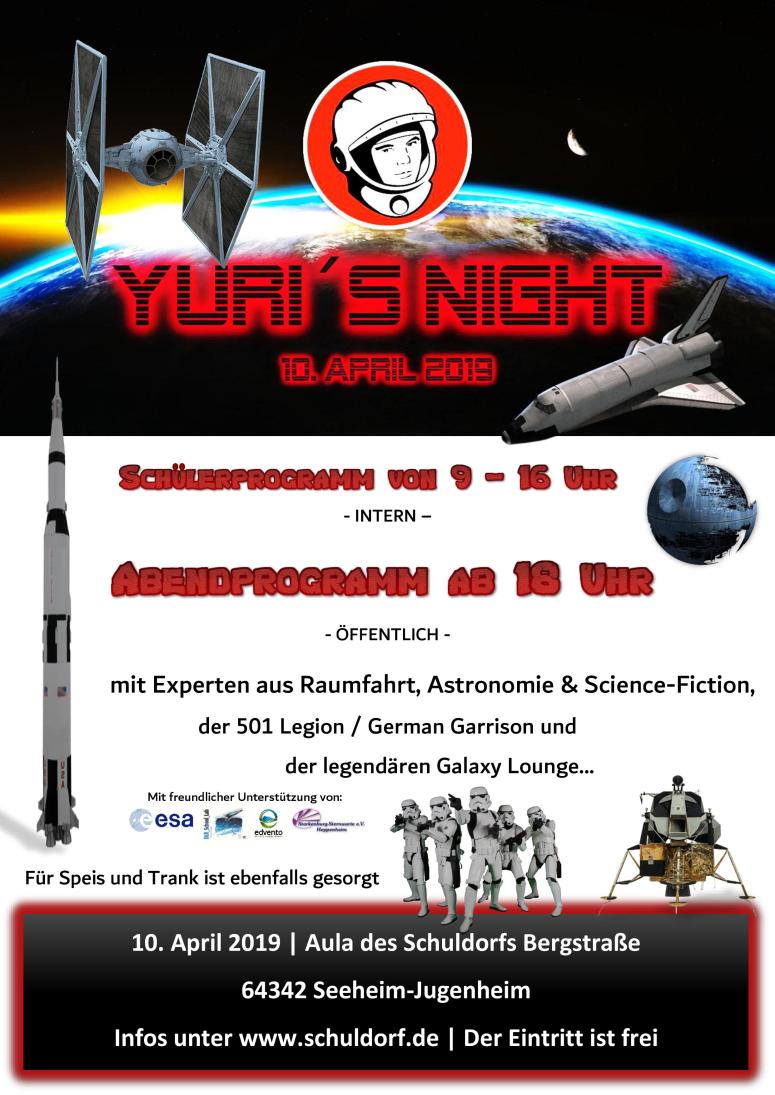 Heute geht es los mit der ersten Yuri’s Night im Schuldorf in Seeheim-Jugenheim. Freut euch auf ein abwechslungsreiches Programm zum Thema „Science meets Fiction“.