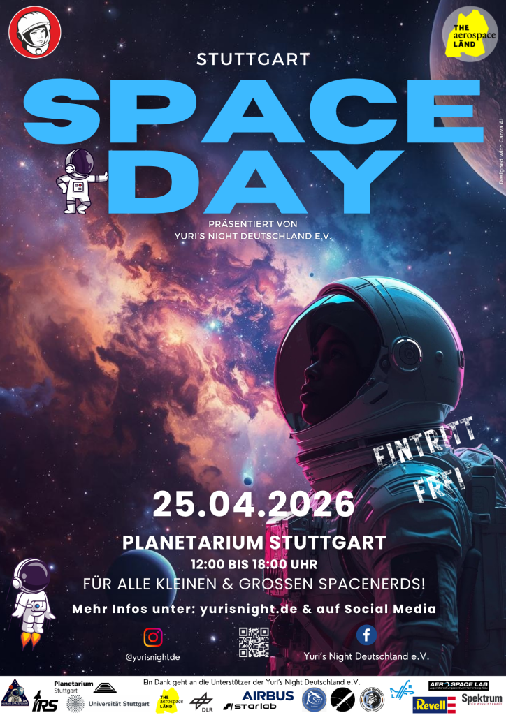 Es war uns wie immer eine Freude, diesen Tag für euch zu gestalten! Und nach dem Space Day ist bekanntlich vor dem Space Day: Am nächsten Samstag, 25.4.2026 geht es im Stuttgarter Planetarium weiter!