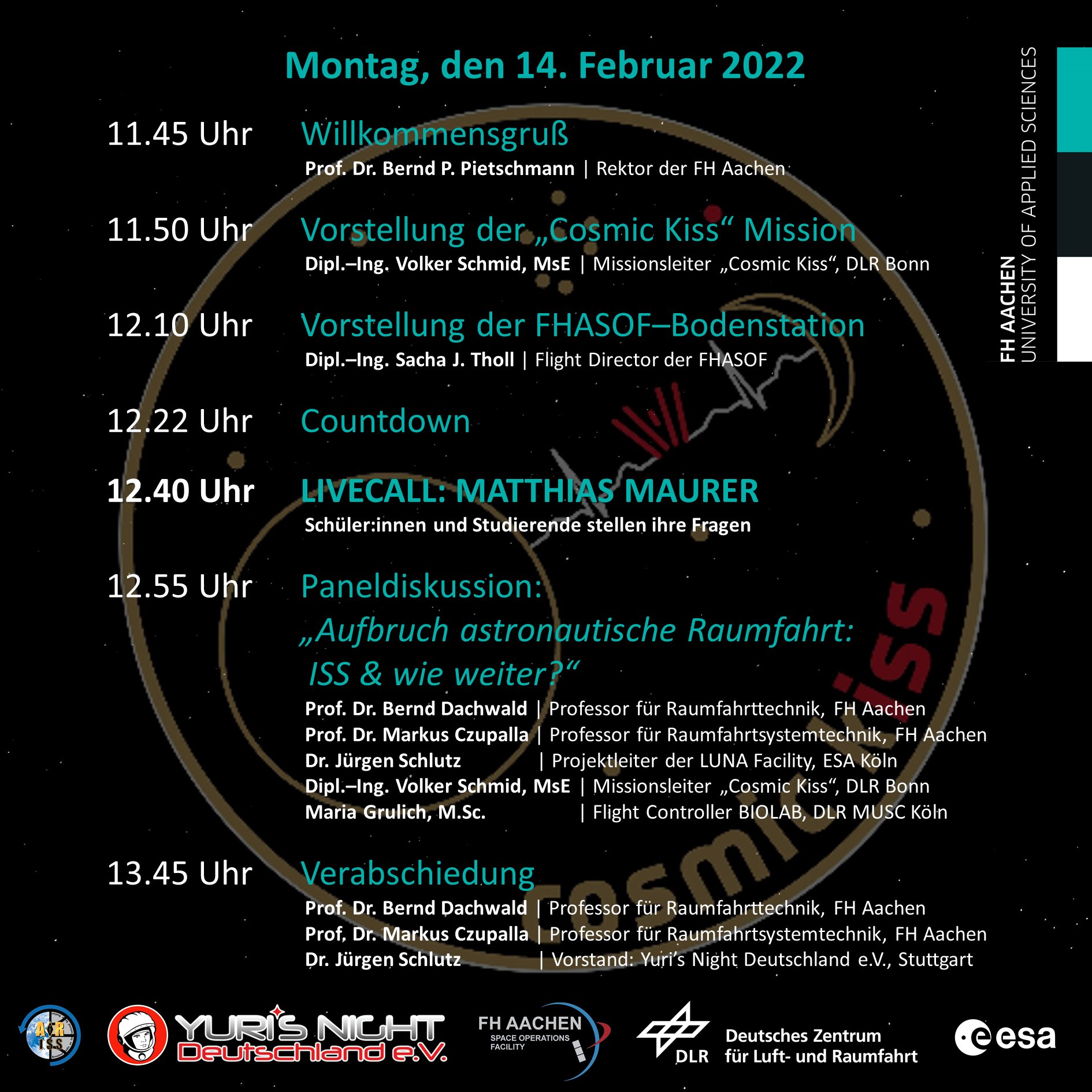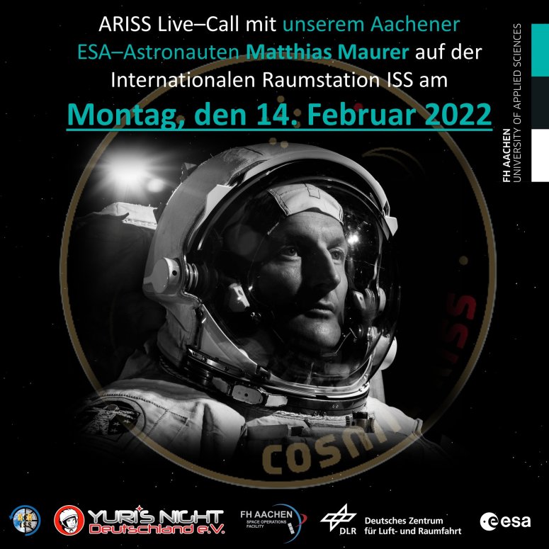 Das Live Call Event findet voraussichtlich im Zeitraum 14.-20.02.2022 an der Bodenstation der FH Aachen in Aachen statt.
