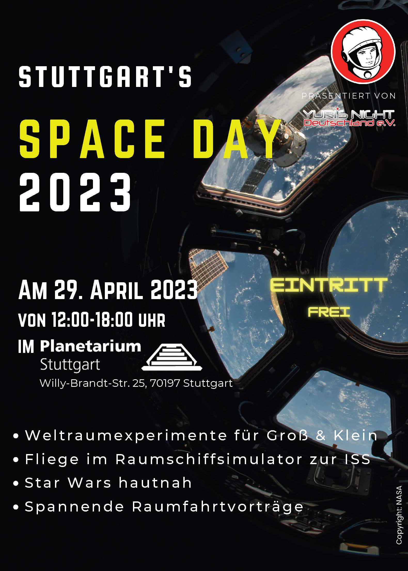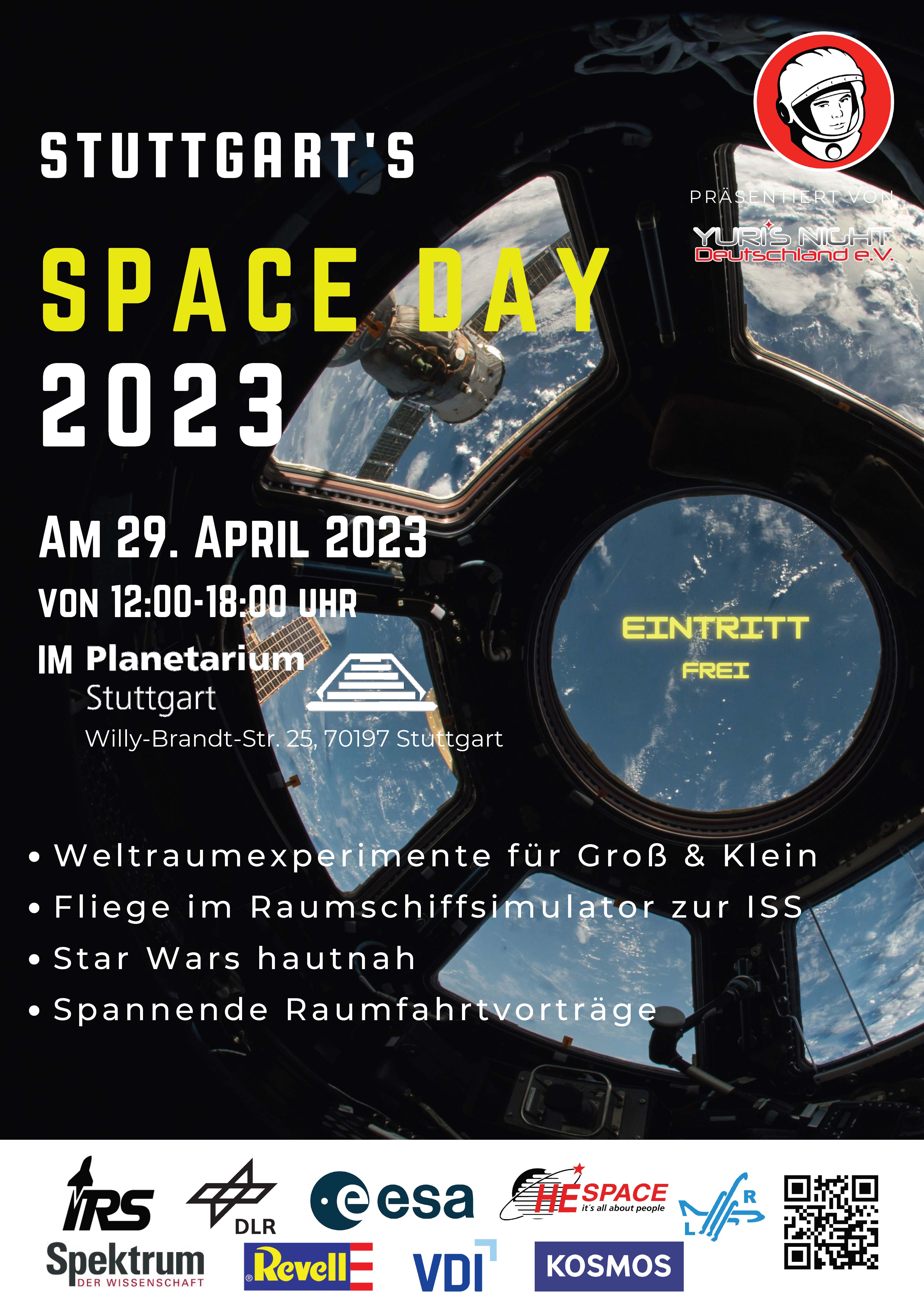 Galerie 2023 – Stuttgart Poster und Flyer des Space Day 2023 in Stuttgart Eindrücke des Space Day 2023 in Stuttgart Teilen mit: Auf Facebook teilen (Wird in neuem Fenster geöffnet) Facebook Gefällt mir Wird geladen …